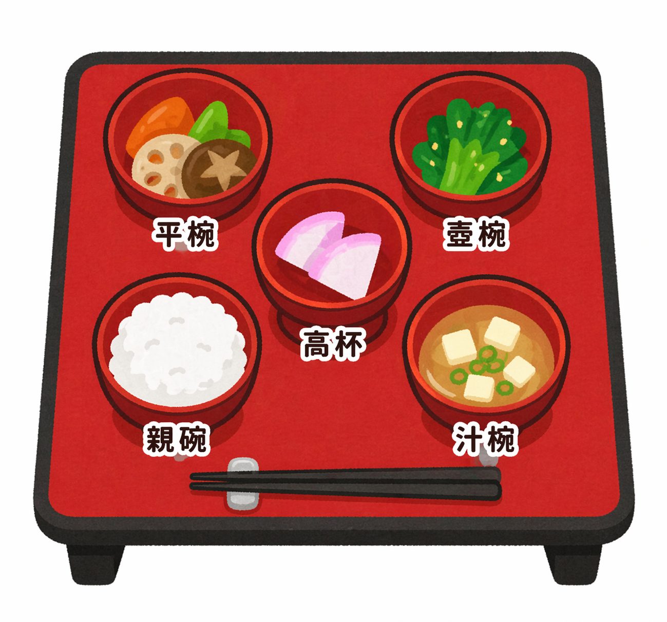 第一に、左手前に置くのが飯椀(めしわん)である。